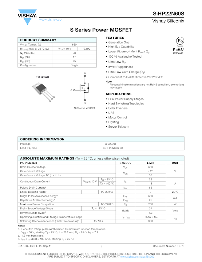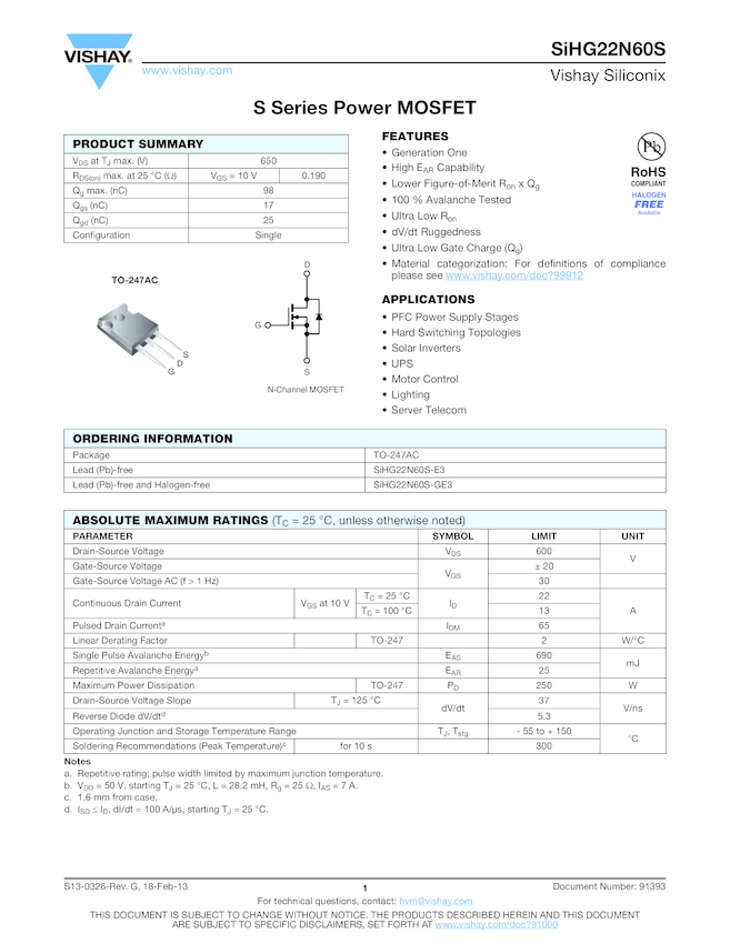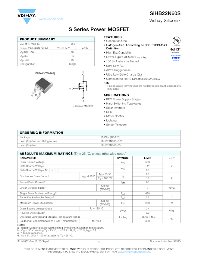 650 V CoolMOS™ N-channel SJ power MOSFET CFD7 in HDSOP-22 bottom-side cooling The 650 V CoolMOS™ CFD7 is Infineon’s latest high voltage superjunction MOSFET technology with integrated fast body diode, completing the CoolMOS™ 7 series. CoolMOS™ CFD7 comes with reduced gate charge (Qg), improved turn-off behavior and a reverse recovery charge (Qrr) of up to 69% lower compared to the competition, as well as the lowest reverse recovery time (trr) in the market. The bottom-side cooled package minimizes conducti