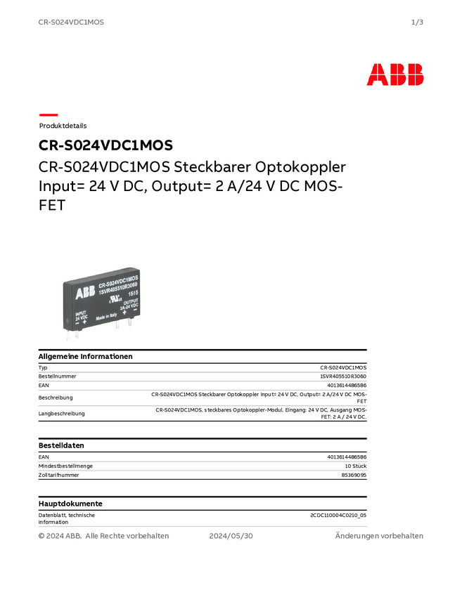 ABB Transoptor fototranzystor CR-S024VDC1MOS