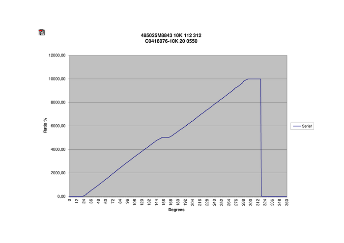 Potencjometr przewodzący plastik, wykonaie specjalne modelu serii 380 2W ( nie Mil wersja modelu RV4 )lin 3% (dla wersji std 312 st) ośka 6,35 mm dł.15,88mm; gwint3/8-32 NEF-3A 6,35 średnica 27,79 mm; gł. 14,3mm; Bushing - Gwint 6,35mm; wyprowadzenia z boku; kąt mechaniczny 312 stopni - ze stopami; kąt elektryczny 273 st ( 131 +11 dead band+131 st)-Rezystancja 10K charakterystyka liniowa typ: S13 10-45%+dead band +55-90% Potencjometr ma odczep CT Katalogowo 112 stopni; ale to jest błąd w katalogu marking: C
