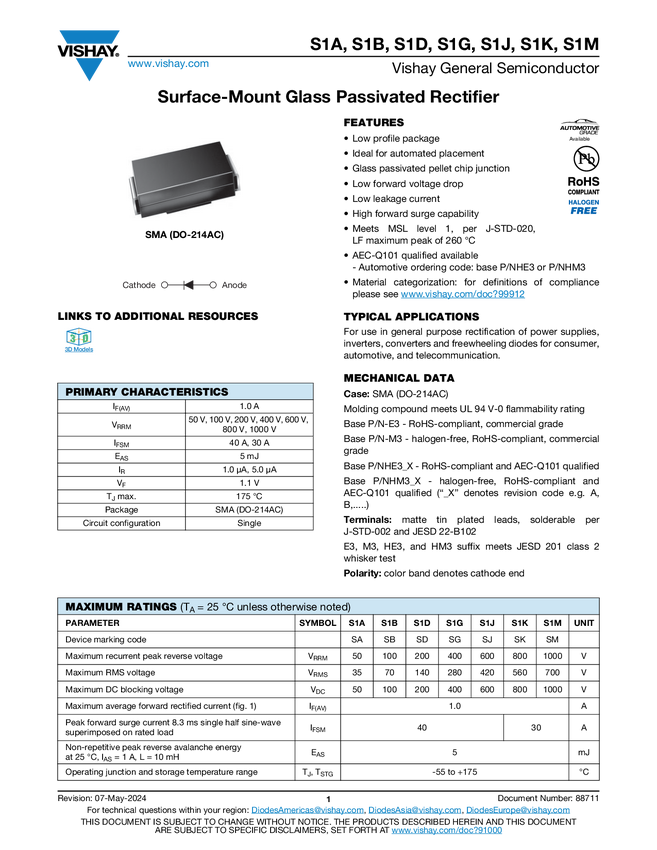 Dioda 1A, 100V, DO214AA HORNBY ELECTRONIC, ARK