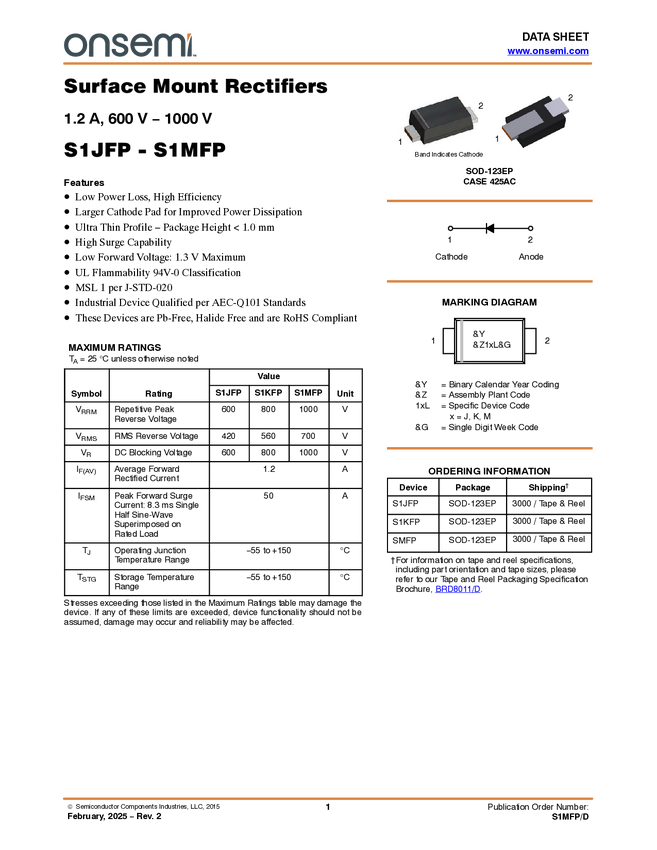 1.2 A, 1000 V Surface Mount Rectifiers