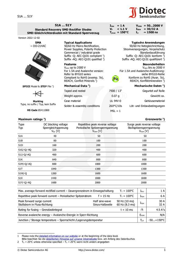 Dioda prostownicza Diotec S1M-AQ N/A N/A