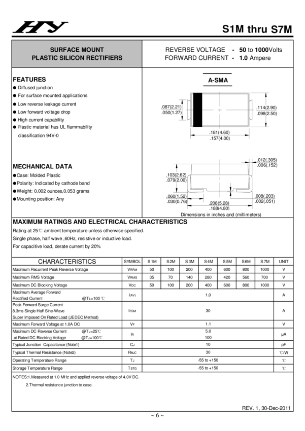 1.2 A, 1000 V Surface Mount Rectifiers