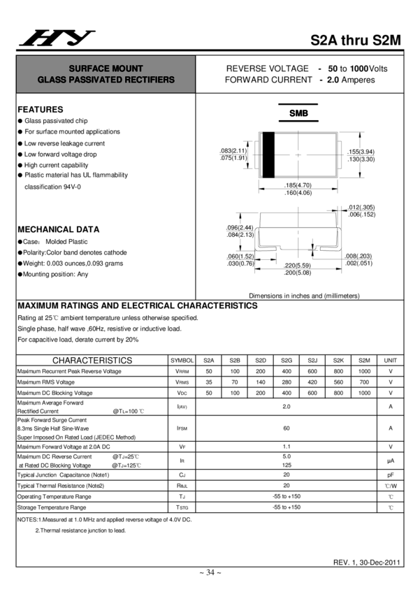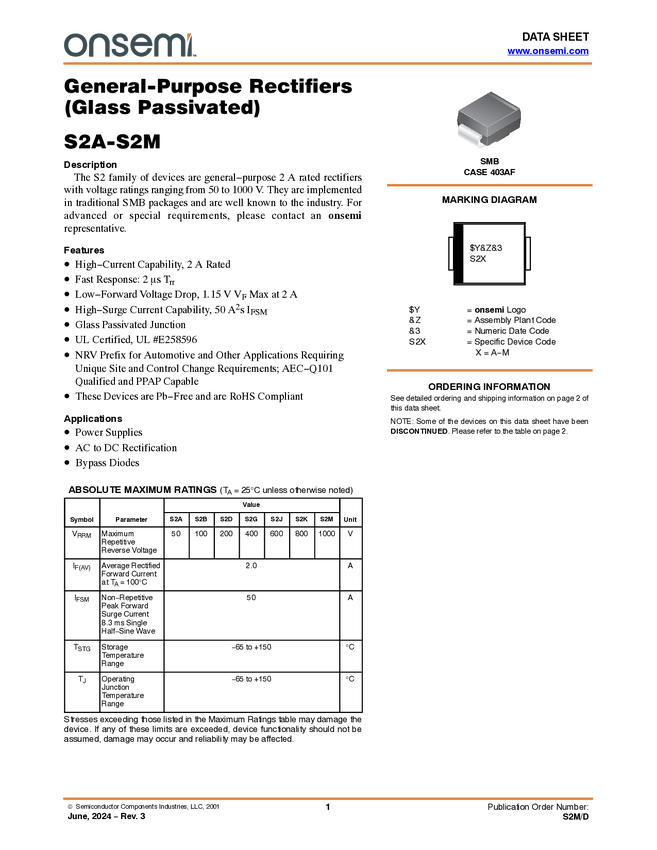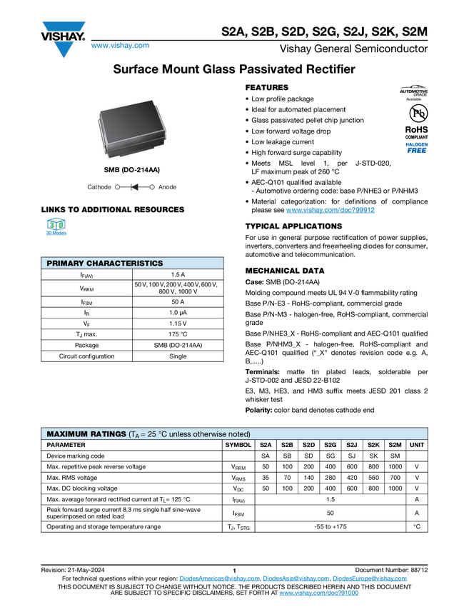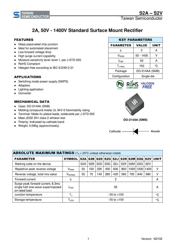 Taiwan Semiconductor Dioda prostownicza 2 mA S2J DO-214AA Pojedynczy taśma na dużej rolce