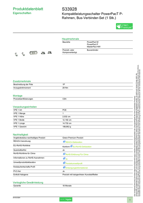 Schneider Electric S33928 S33928 Akcesorium do wyłącznika mocy 1 szt.