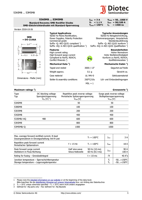 Dioda prostownicza Diotec S3ASMB N/A N/A