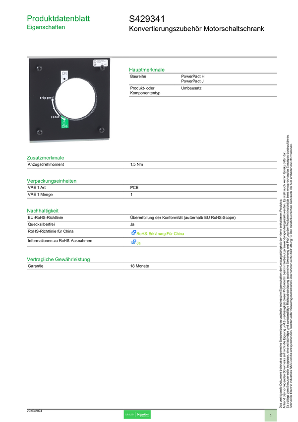 Schneider Electric S429341 Akcesorium do wyłącznika mocy 1 szt.