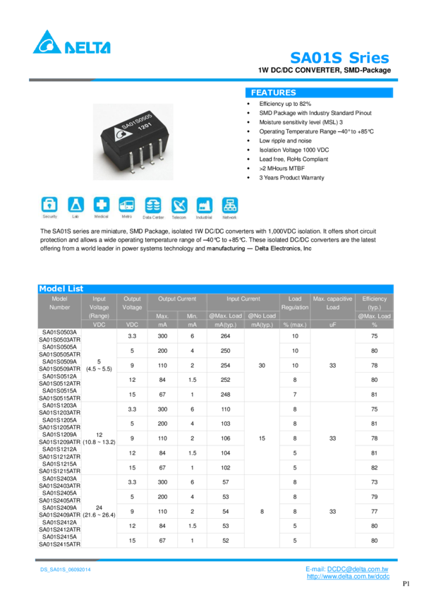 Module DC-DC 1-OUT 15V 0.067A 1W 8-Pin SMD T/R