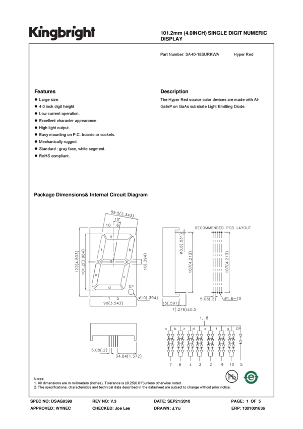 Displays Segmented Panel 1DIGIT 58LED Red 10-Pin DIP Box
