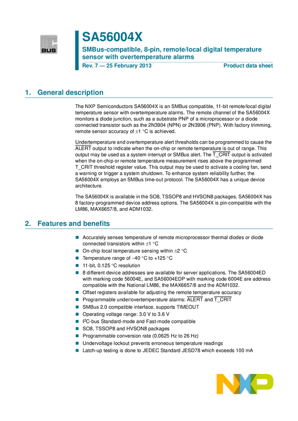 SMBus-compatible, 8-pin, remote/local digital temperature sensor with overtemperature alarms