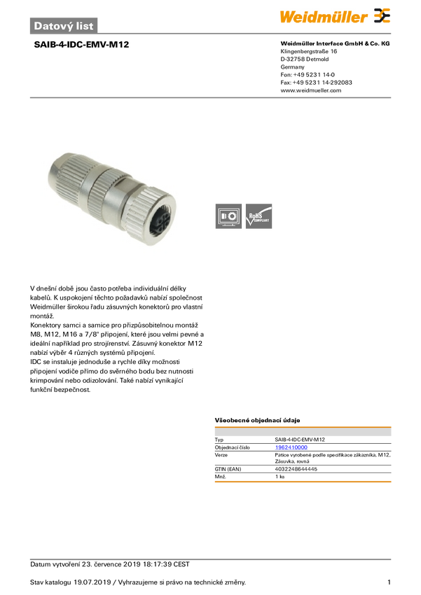 Złącze Weidmüller SAIB-4-IDC-EMV-M12 1962410000 1 szt.