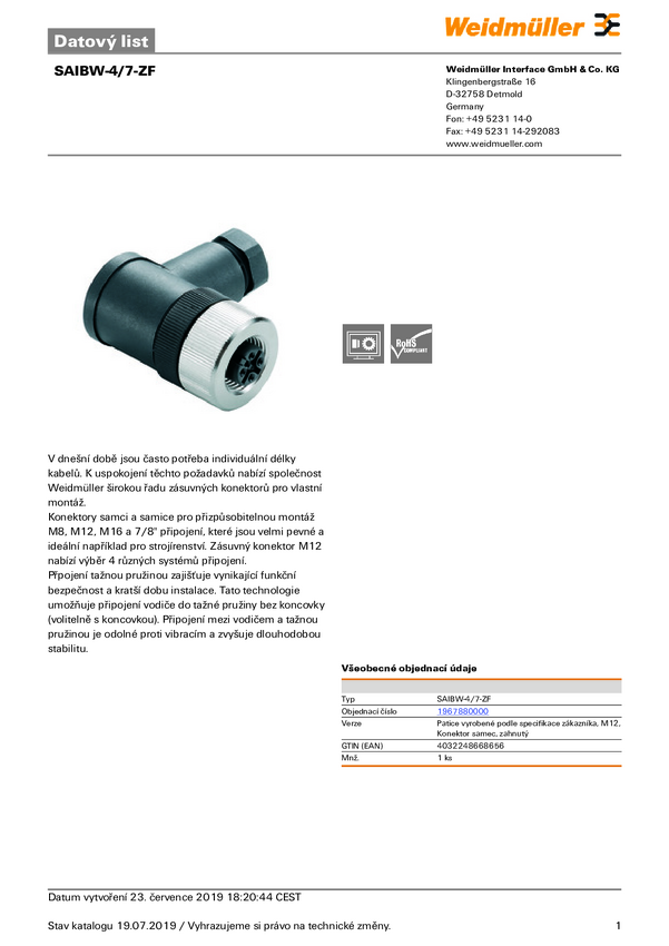 Złącze Weidmüller SAIBW-4/7-ZF 1967880000 1 szt.