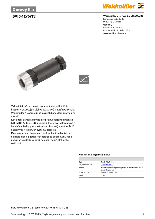 Złącze Weidmüller SAIB 5/9-VA-B-COD 1920730000 1 szt.