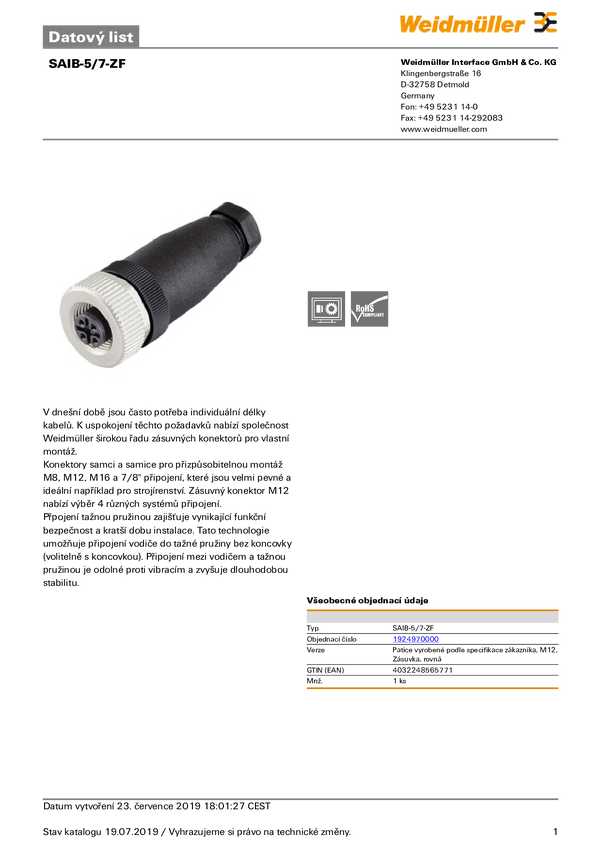 Złącze Weidmüller SAIB-5/7-(KV) 1921070000 1 szt.