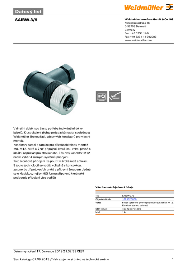 Złącze Weidmüller SAIBW-M-5/8 M12 1803920000 1 szt.