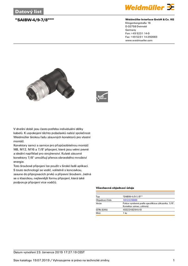 Złącze Weidmüller SAIBW-M-5/8 M12 B-COD 1944580000 1 szt.