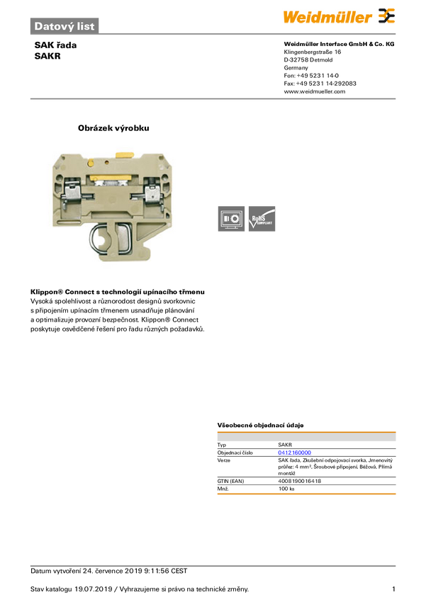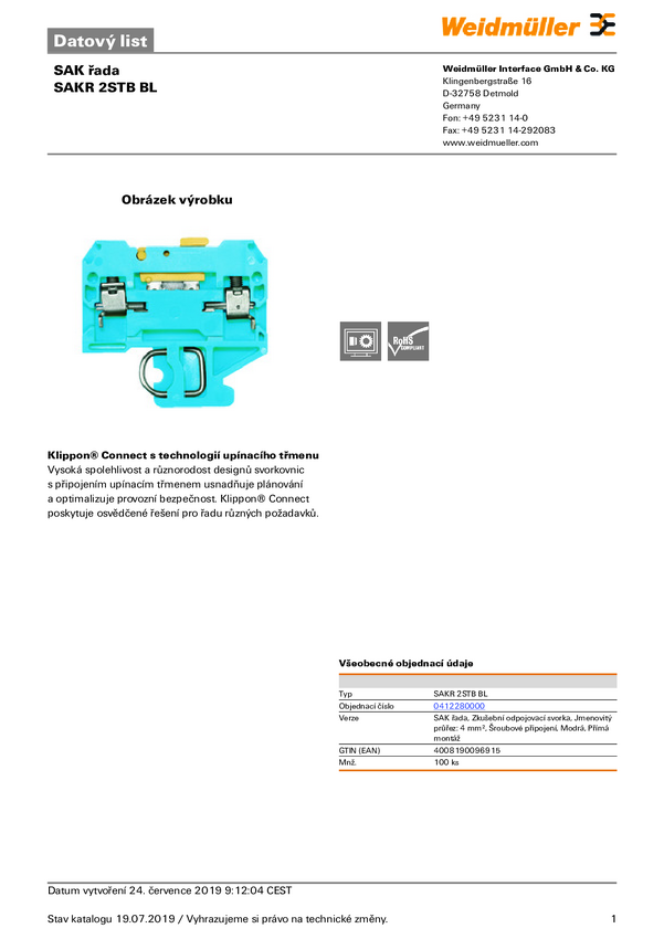 Seria SAK, Złączka rozłączająca, Przekrój pomiarowy: 4 mm², złącze śrubowe, PA 66, niebieski, montaż bezpośredni SAKR 2S