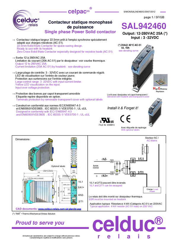 Przekaźnik SSR Celduc TC-GSR-1-25DD 20 A 280 V/AC 1 szt.