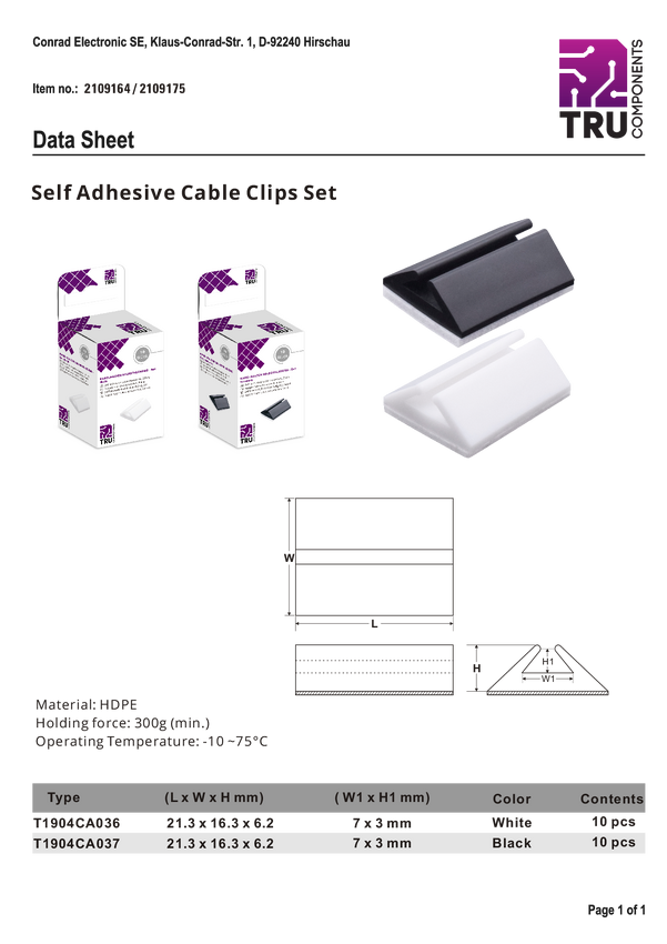 Podstawa samoprzylepna TRU COMPONENTS T1904CA036 Zakres średnicy wiązki 2.50 do 3.50 mm 10 szt.