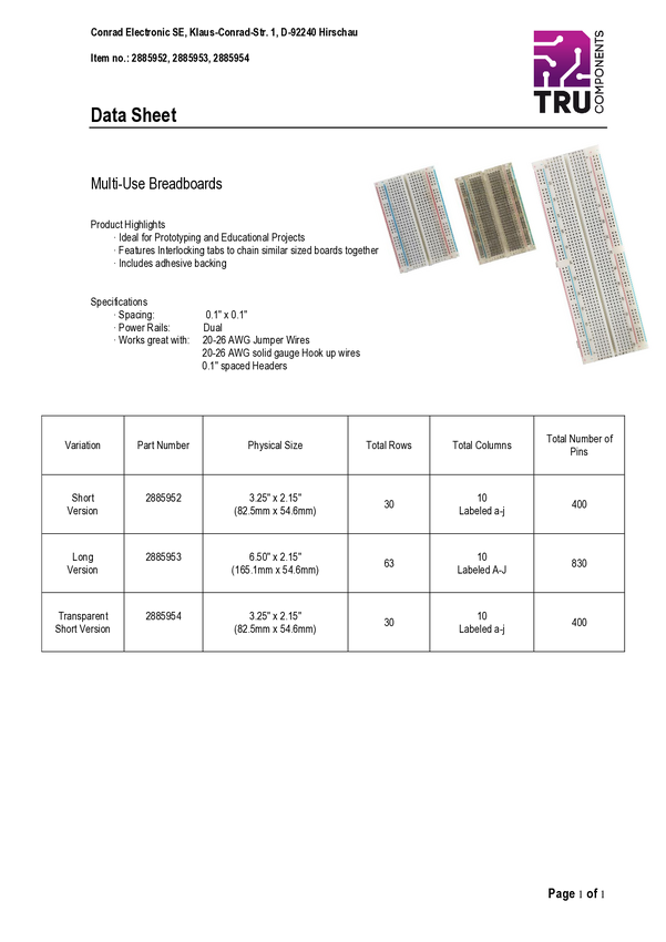 Płytka stykowa prototypowa TRU COMPONENTS TC-11543812 samoprzylepne Ilość pinów 830 1 szt.