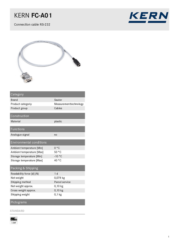 Kabel połączeniowy FC-A01 Sauter FC-A01 FCA01