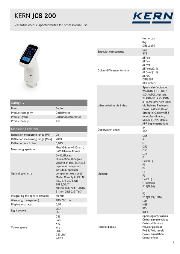 Miernik koloru Sauter JCS 200 JCS200