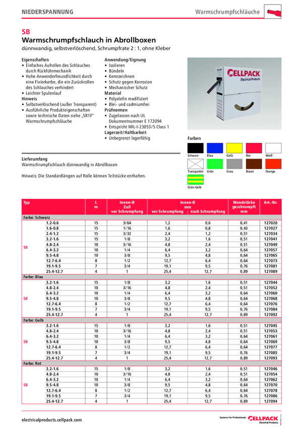 CellPack 127074 Rurka termokurczliwa bez kleju SB12.7-6.4, 2:1, od 12.70 mm do 6.40 mm, 8 m