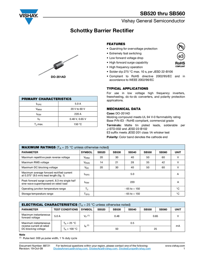 5.0 Ampere Schottky Barrier Rectifiers