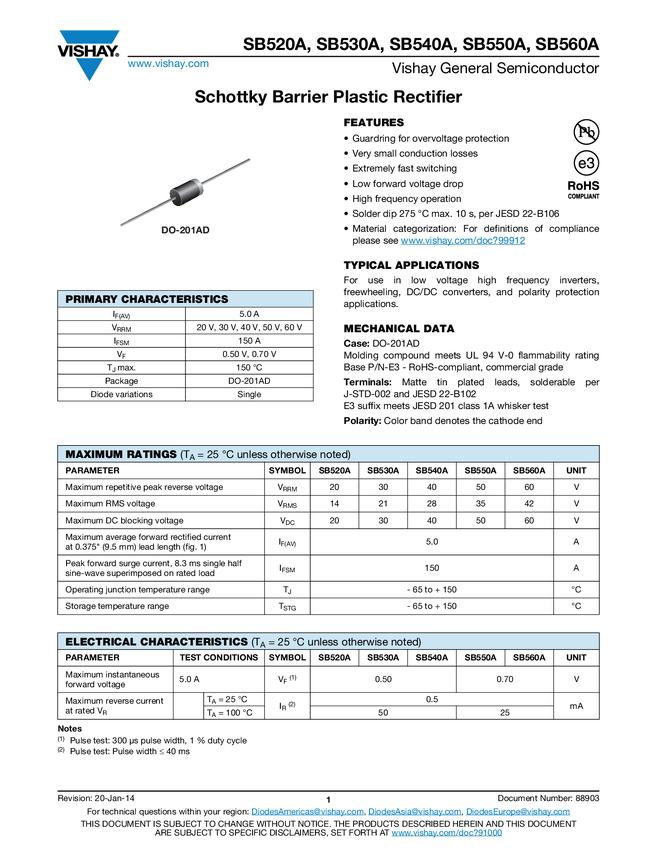 Schottky Barrier Plastic Rectifier