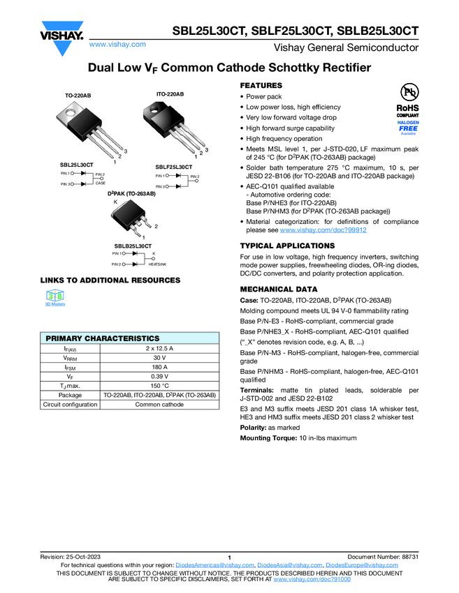 Dual Low VF Common Cathode Schottky Rectifier