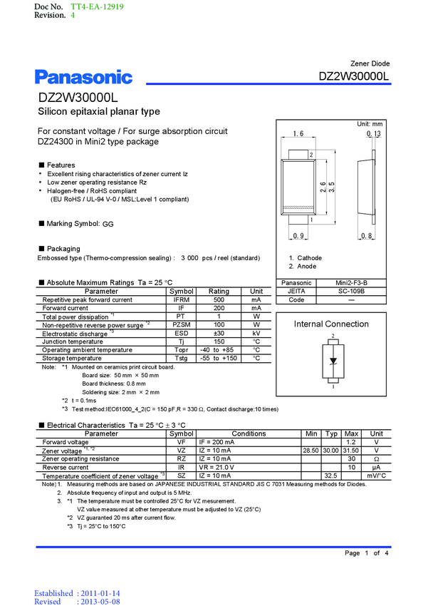 Diode Zener Single 30V 100mW 2-Pin SC-109B T/R