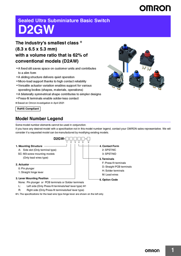 Omron D2GW-SC02M Mikroprzełącznik 13.5 V/DC 0.01 A 1 x wł/(wył) 1 szt. torba