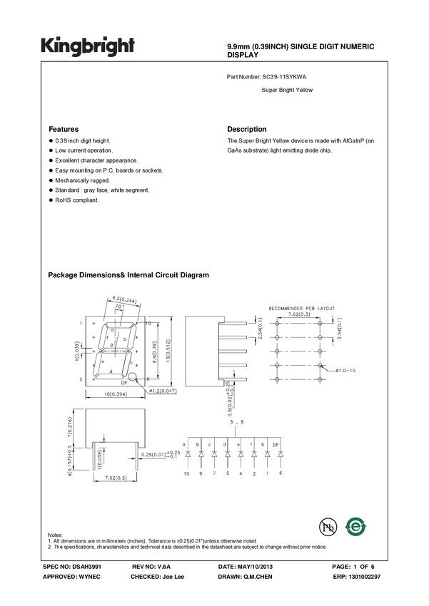 Wyświetlacz 7 segmentowy SC39-11SYKWA Kingbright SC39-11SYKWA żółty