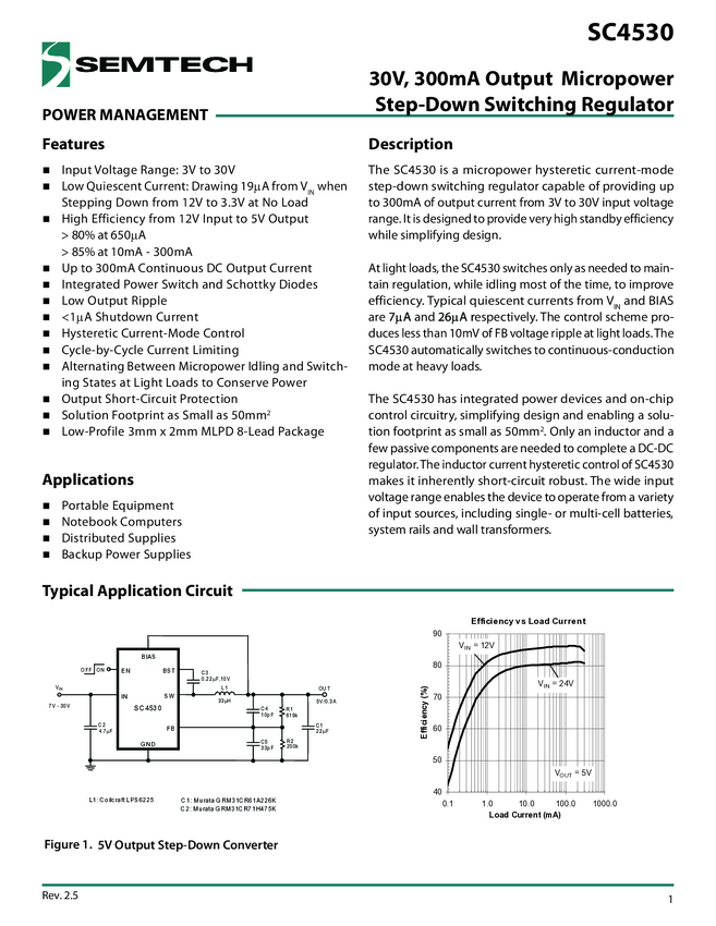Układ scalony; SC4530WLTRT; regulator napięcia; Uwej.: 3-30V; 300mA; Uwyj.:1,8-18V; 1 kanał; MLPD-W-8; SMD; SEMTECH
