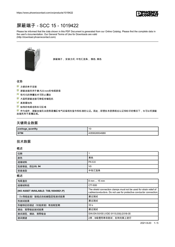 Zacisk ekranujący Phoenix Contact SCC 15 1019422, 10 szt.