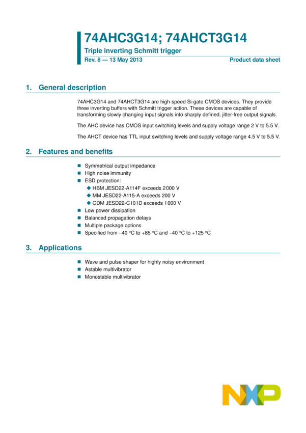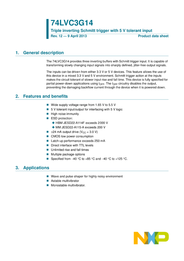 Triple inverting Schmitt trigger with 5 V tolerant input
