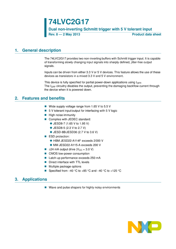 Dual non-inverting Schmitt trigger with 5 V tolerant input