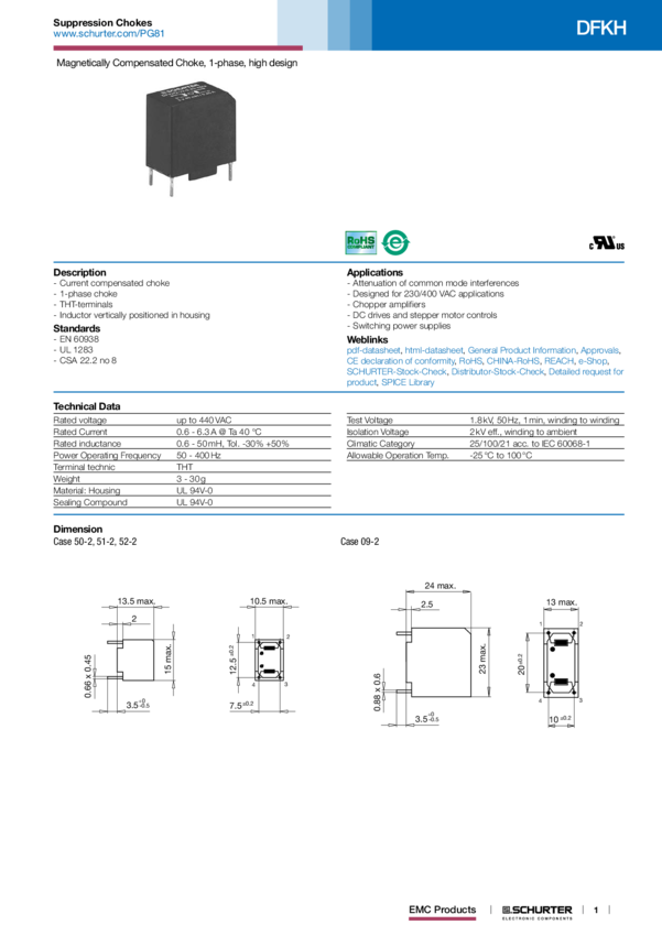 DFKH COMPENSATED CHOKE 2A 6.8mH