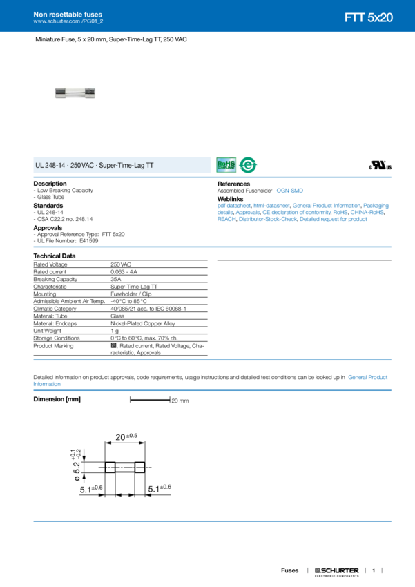 FTT 5X20 FUSE 1A TT