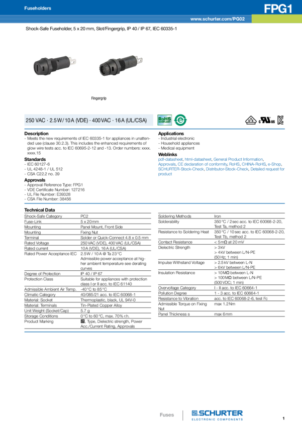 FPG3 Fuseholder 5x20 IP 40