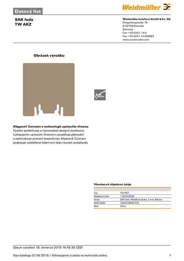 Sciana rozdzielająca Weidmüller 1190330000 50 szt.