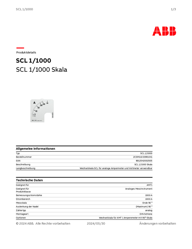 ABB 2CSM110339R1041 SCL1-1000 Analogowy skaźnik panelowy
