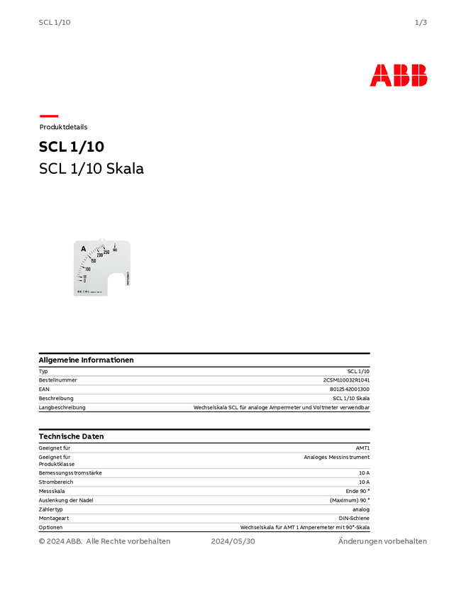 ABB 2CSM110032R1041 SCL1-10 Analogowy skaźnik panelowy