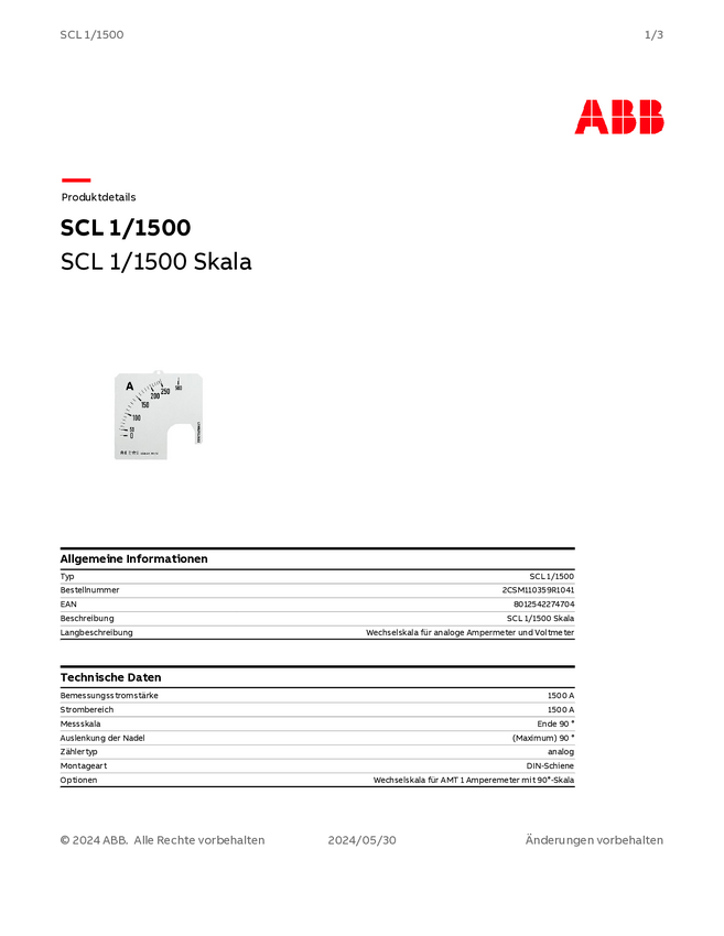 ABB 2CSM110359R1041 SCL1 1500A Analogowy skaźnik panelowy