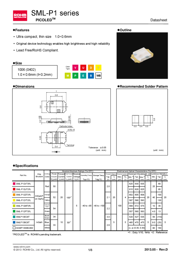 LED Uni-Color Green Chip LED 2-Pin 0402 T/R
