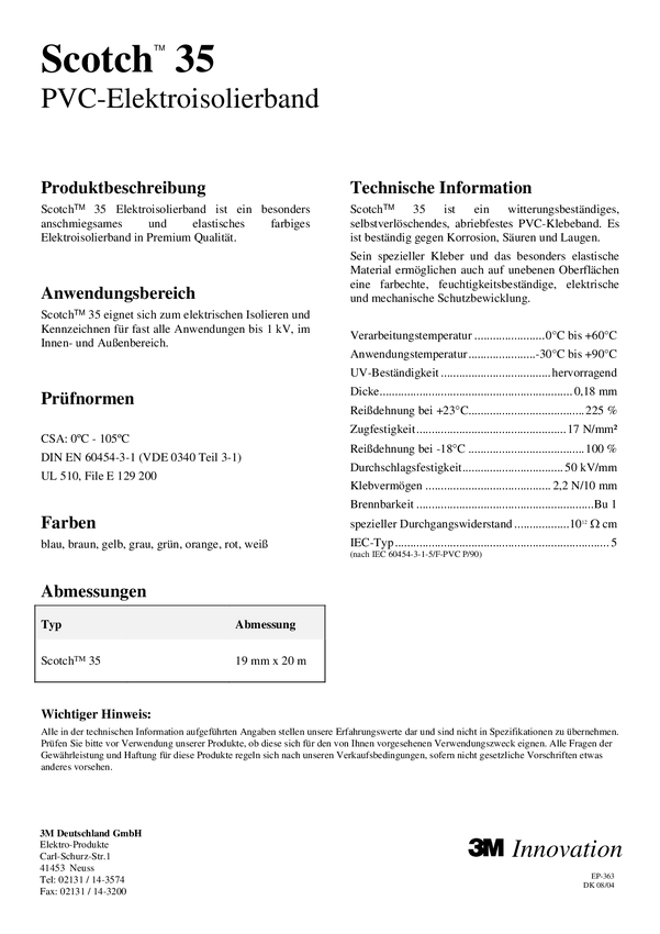 Taśma izolacyjna Scotch Scotch® 35 SCOTCH35-19X20GR Scotch™ 35 (D x S) 20 m x 19 mm 20 m 1 szt.