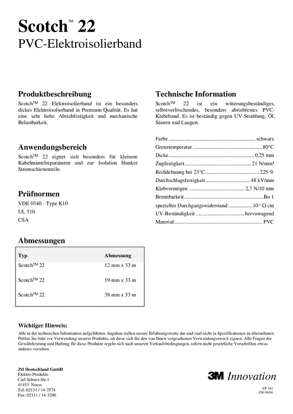 Taśma izolacyjna Scotch Scotch™ 22 SCOTCH22-19X33 Scotch™ 22 (D x S) 33 m x 19 mm 33 m 1 szt.