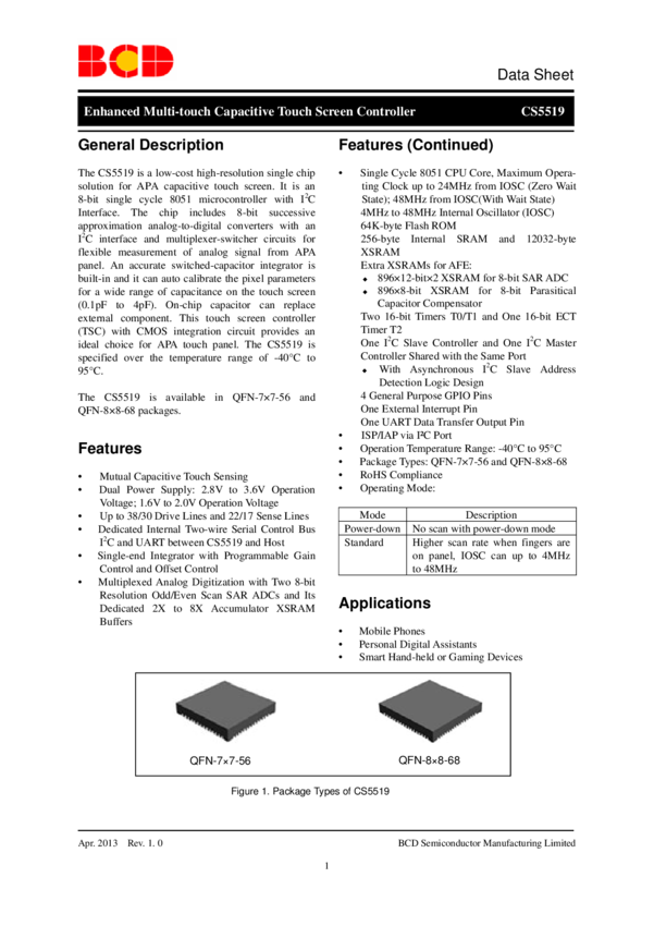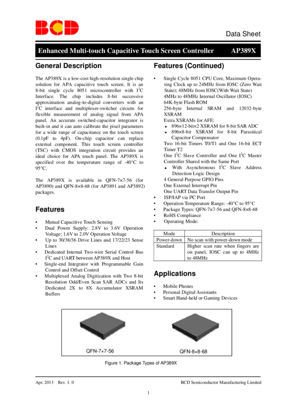 AR1000 Series Resistive Touch Screen Controller Data Sheet (03/21/2012)