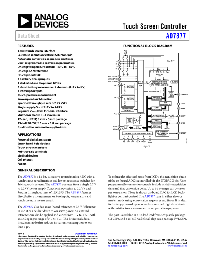 AD7877: Touch Screen Controller