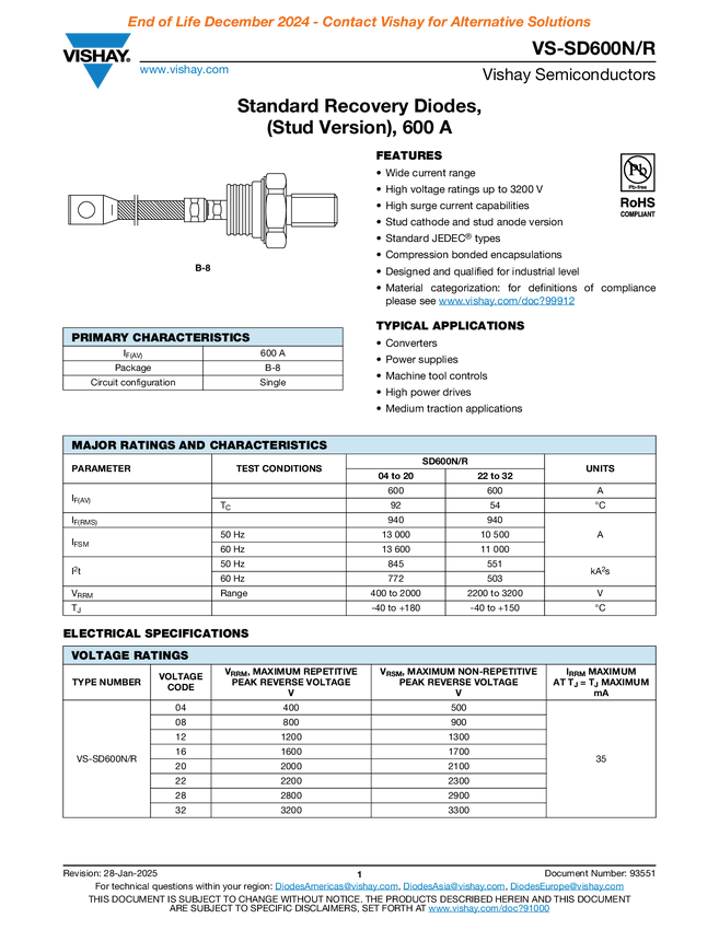 Fast Recovery Diodes (Hockey PUK Version), 600 A